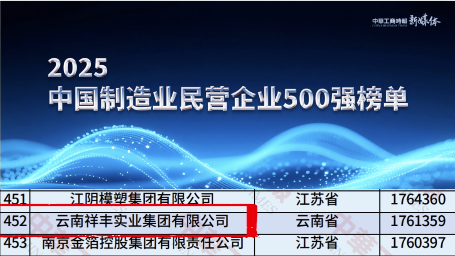 祥豐集團(tuán)榮登2025中國(guó)制造業(yè)民營(yíng)企業(yè)500強(qiáng)榜單!位列全國(guó)...